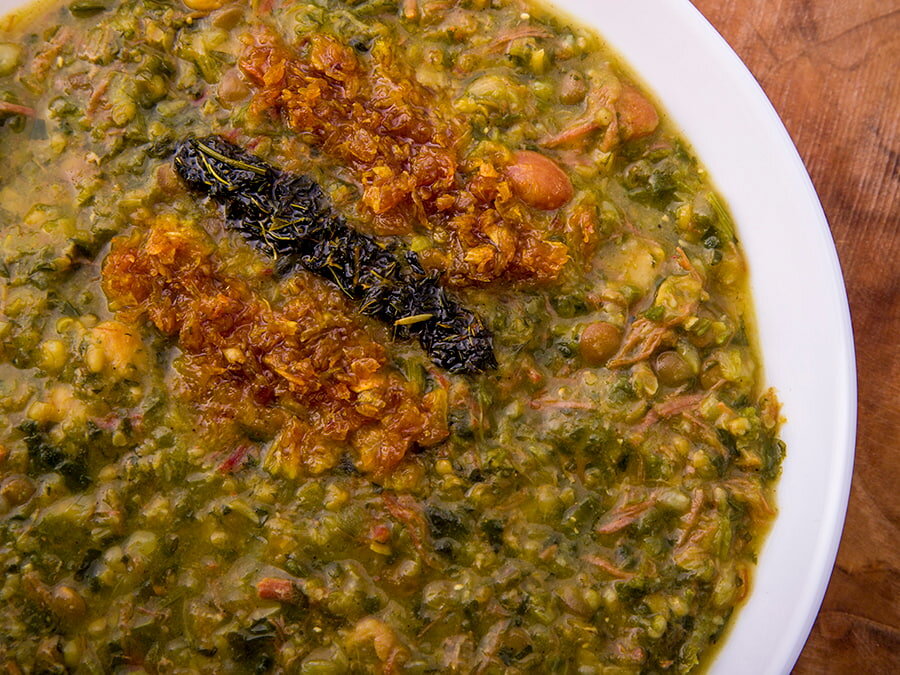 این غذا مختص شهرستان شاهرود در سمنان است و وقتی روزهای عزاداری امام حسین(ع) همزمان با اواخر بهار و اوایل تابستان باشد، بهعنوان نذری مجلسی به عاشقان حسین(ع) داده میشود.